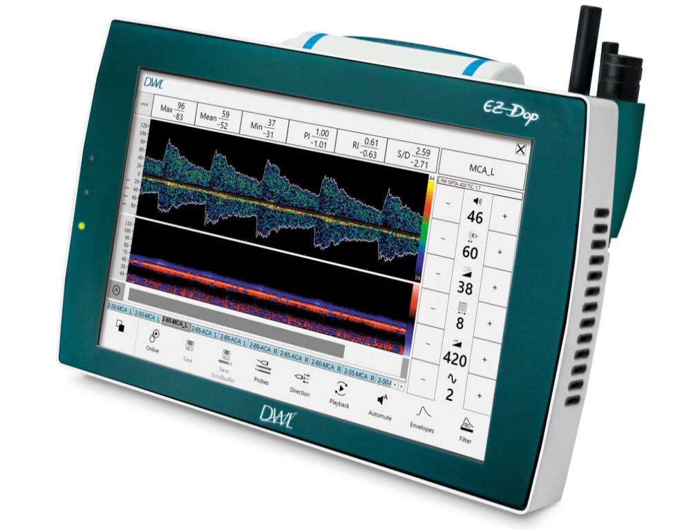 Point-of-Care (POC) TCD-System für die Routine-Diagnostik in vielseitigen klinischen Anwendungen. Kompakt, tragbar und effizient, mit Touchscreen und Batterieoption. Individuell und einfach in Kliniken, OPs, Intensivstationen und Arztpraxen integrierbar.